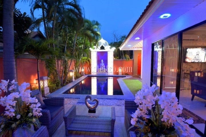 This Thai-Bali style pool villa located in the residential part of the estate features an elegant western style design with some oriental accents. Only recently it underwent a modernization and renovation with new furniture and decorative items added.