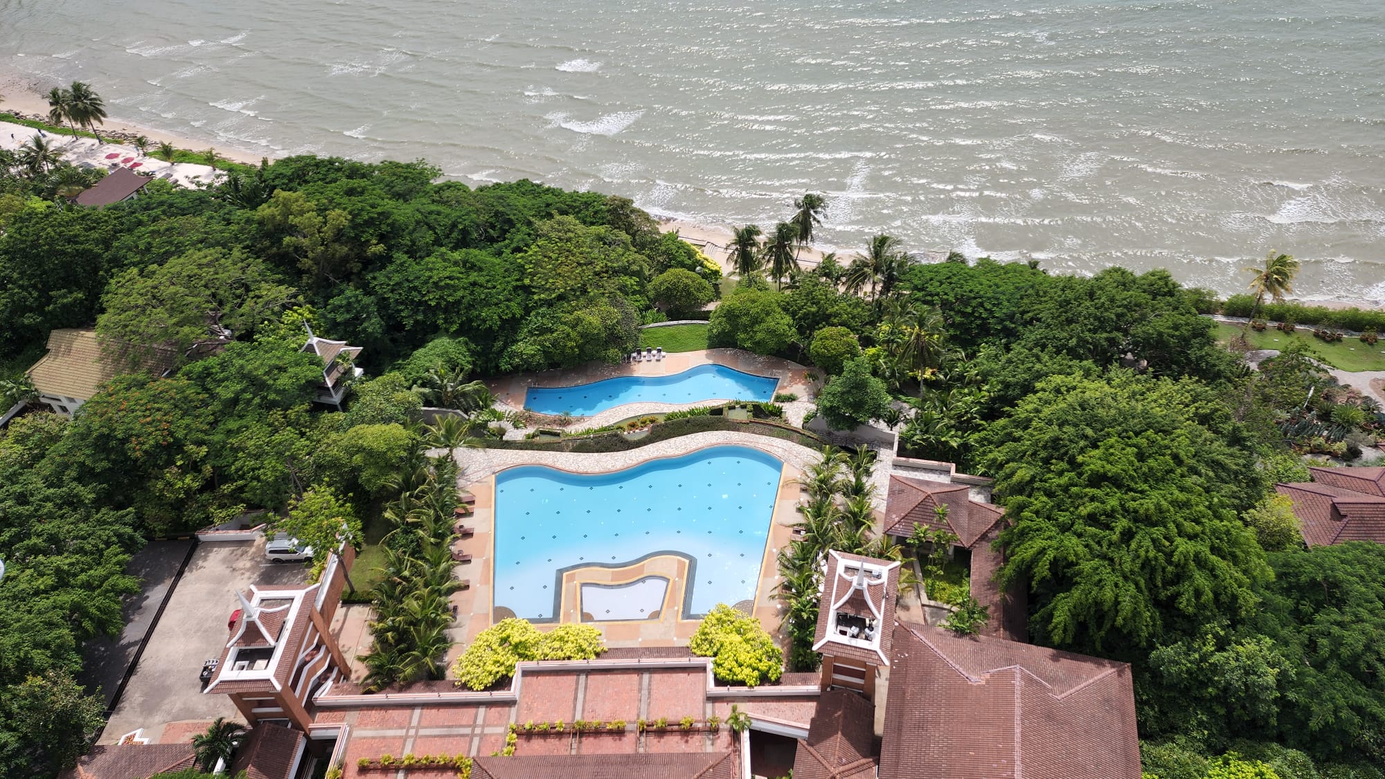 It is superbly and centrally located right on the Beach, between Pattaya and Jomtien both of them offering a wide array of international style leisure facilities and attractions.