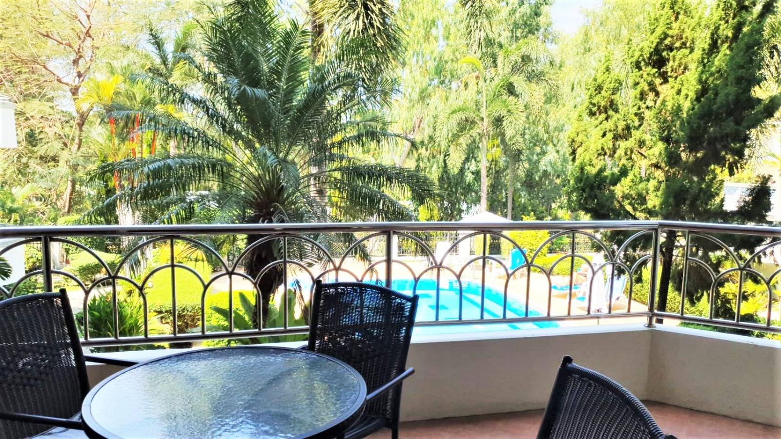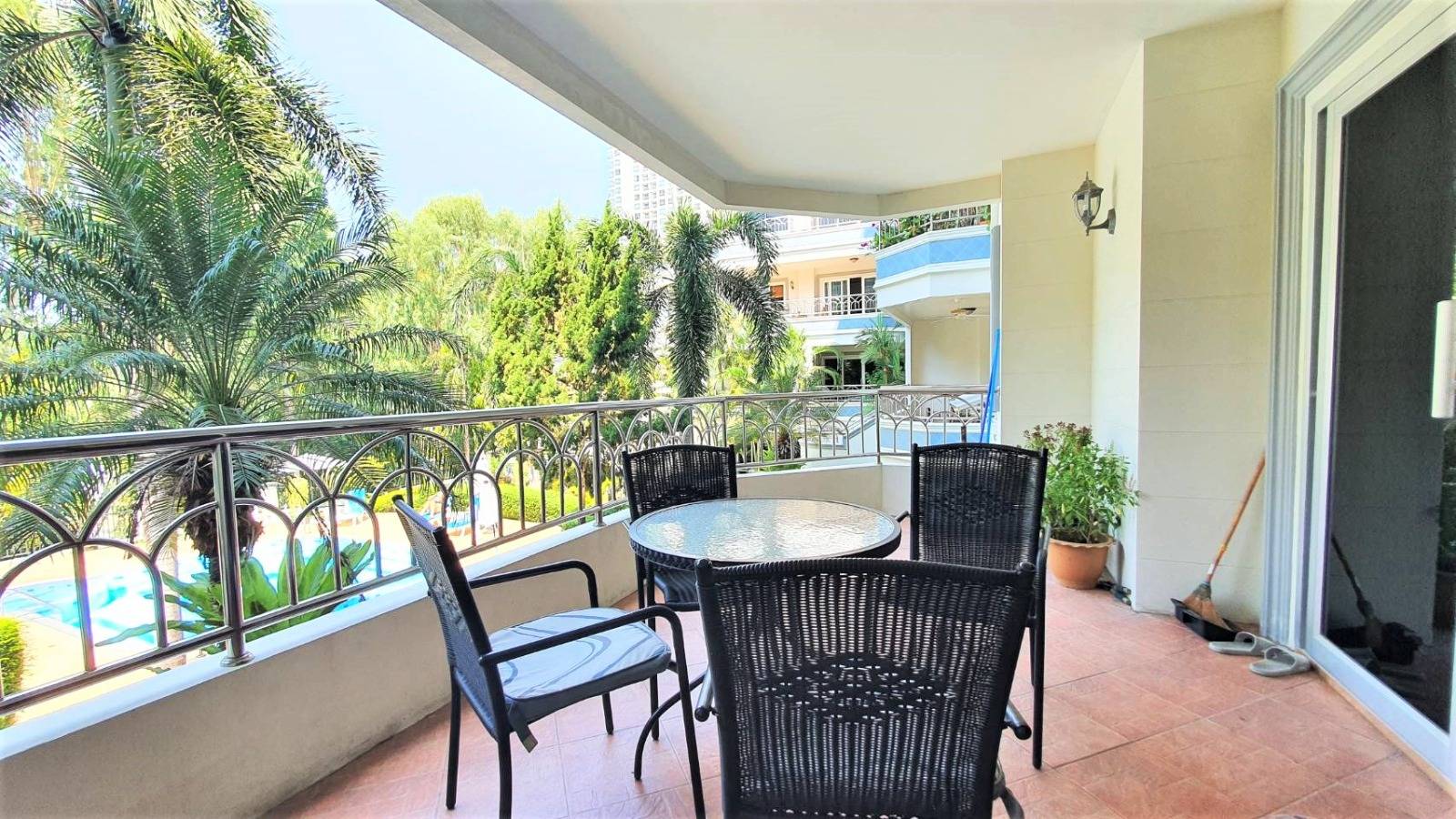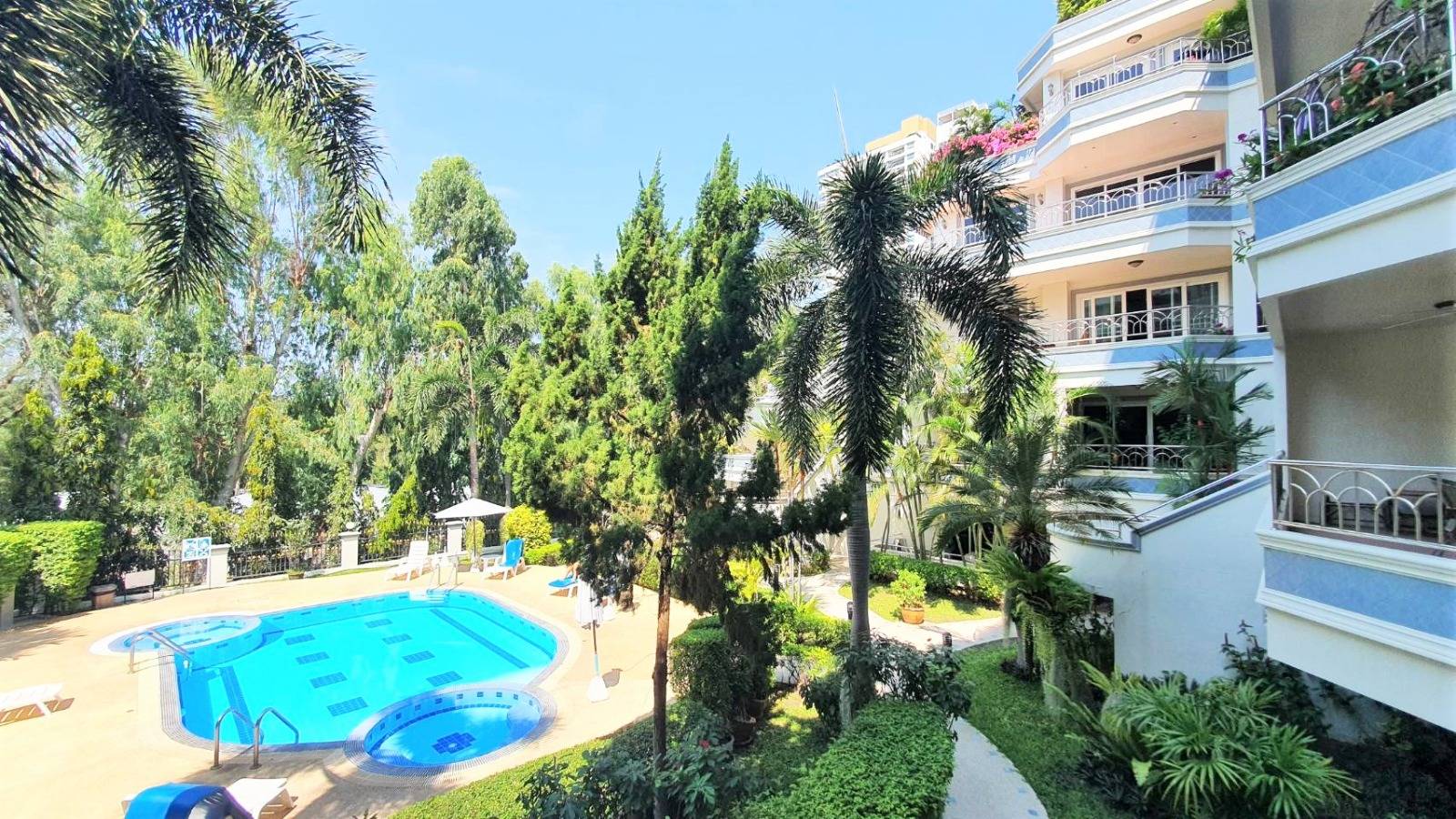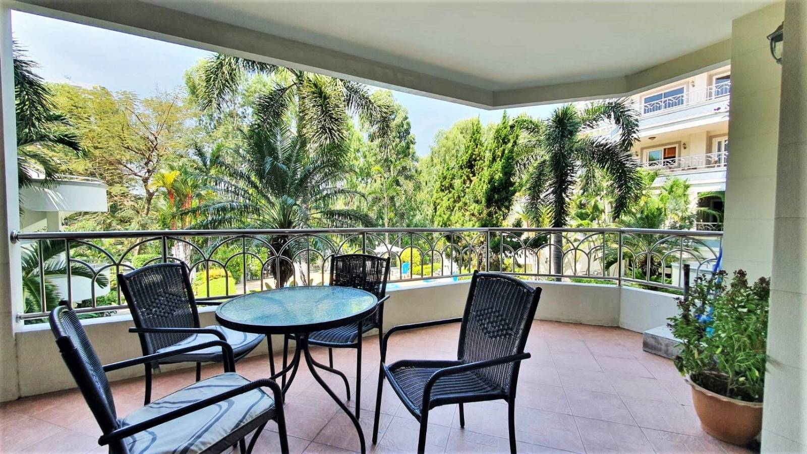 Enjoy a large private balcony overlooking a lush garden and serene swimming pool – ideal for relaxing or entertaining. The unit features a modern European kitchen, three air conditioning units, and comes fully furnished, ready to move in.